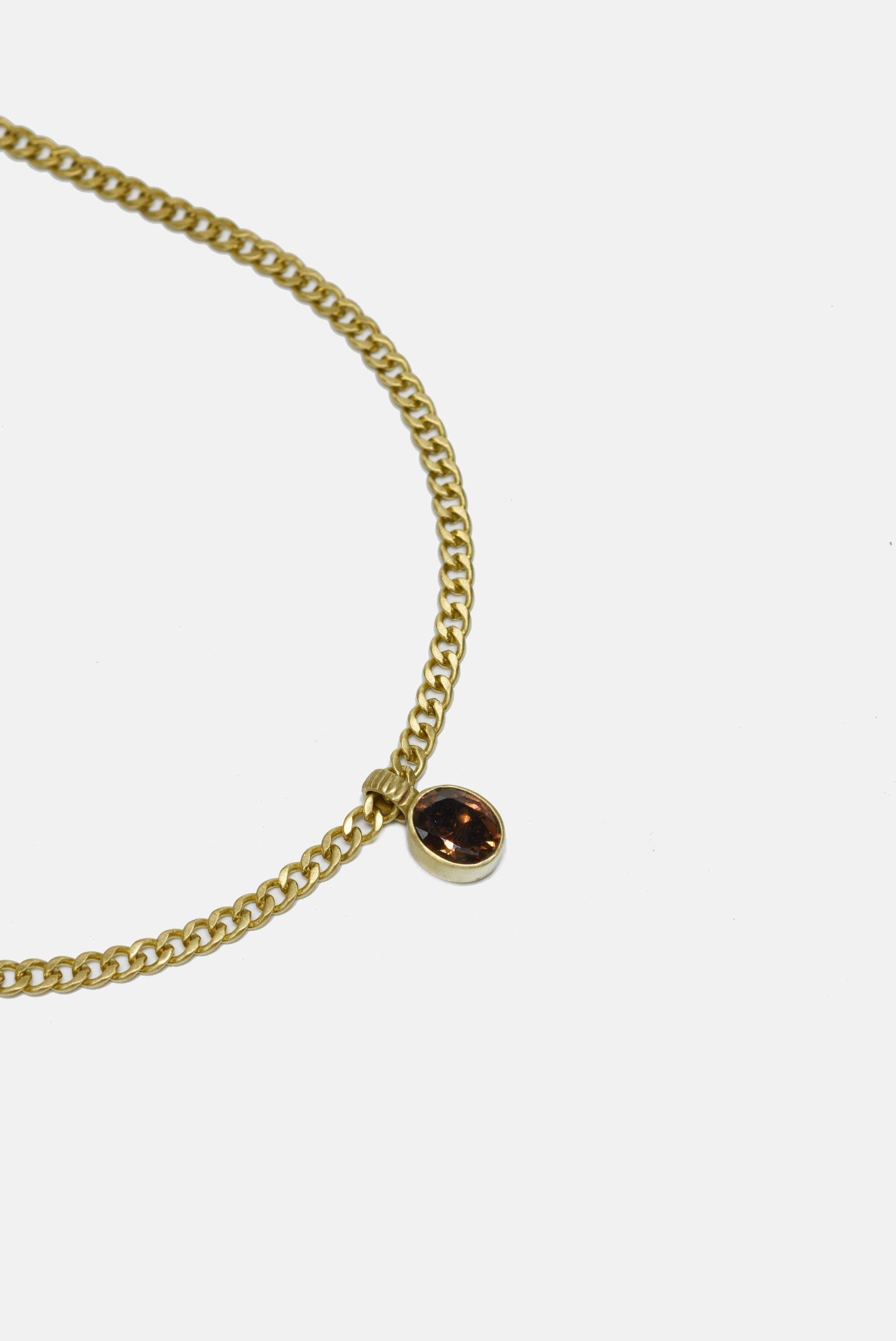 Smoky Quartz Pendant Necklace w/ Brass Chain