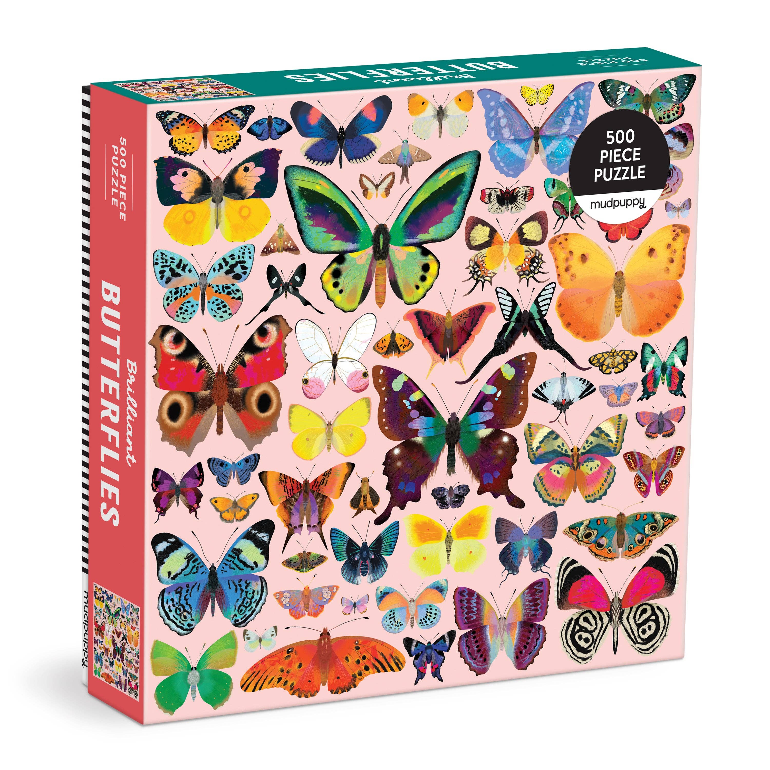 500 PIECE PUZZLE – Embark on a delightful journey surrounded by butterfly friends and more with Mudpuppy's charming 500-piece puzzle featuring artwork of fluttering butterflies.