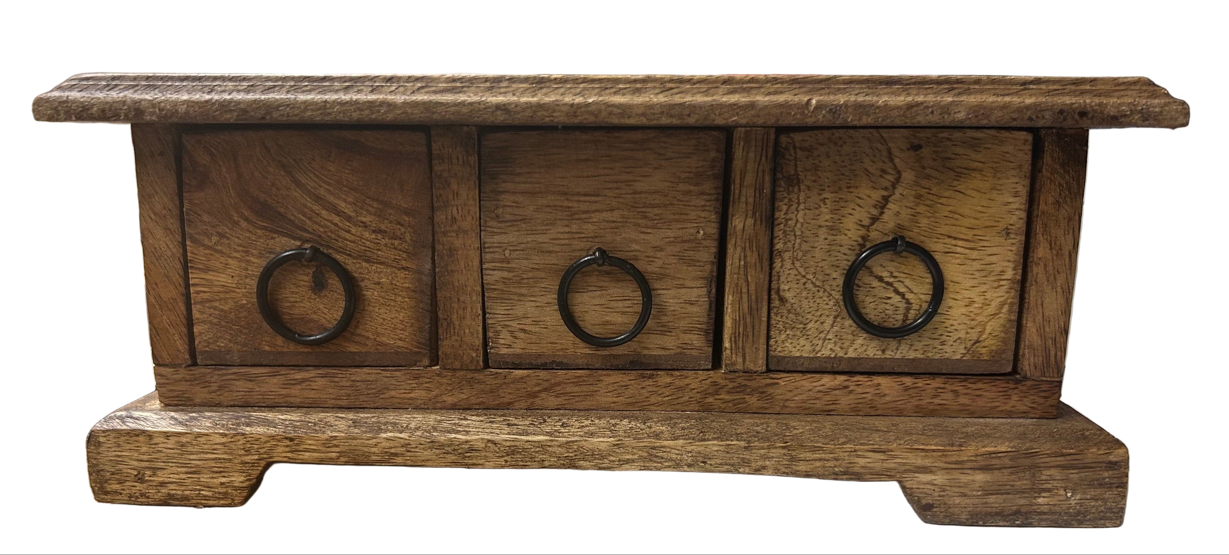 Three Drawers Wooden Herb Chest - Light grain wood.