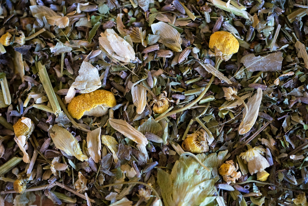 Ingredients: Catnip Leaf, Chamomile Flower, Hop Flower, Lavender Flower, Lemon Balm Leaf, Passionflower, Skullcap, St. John's Wort, Valerian Root.