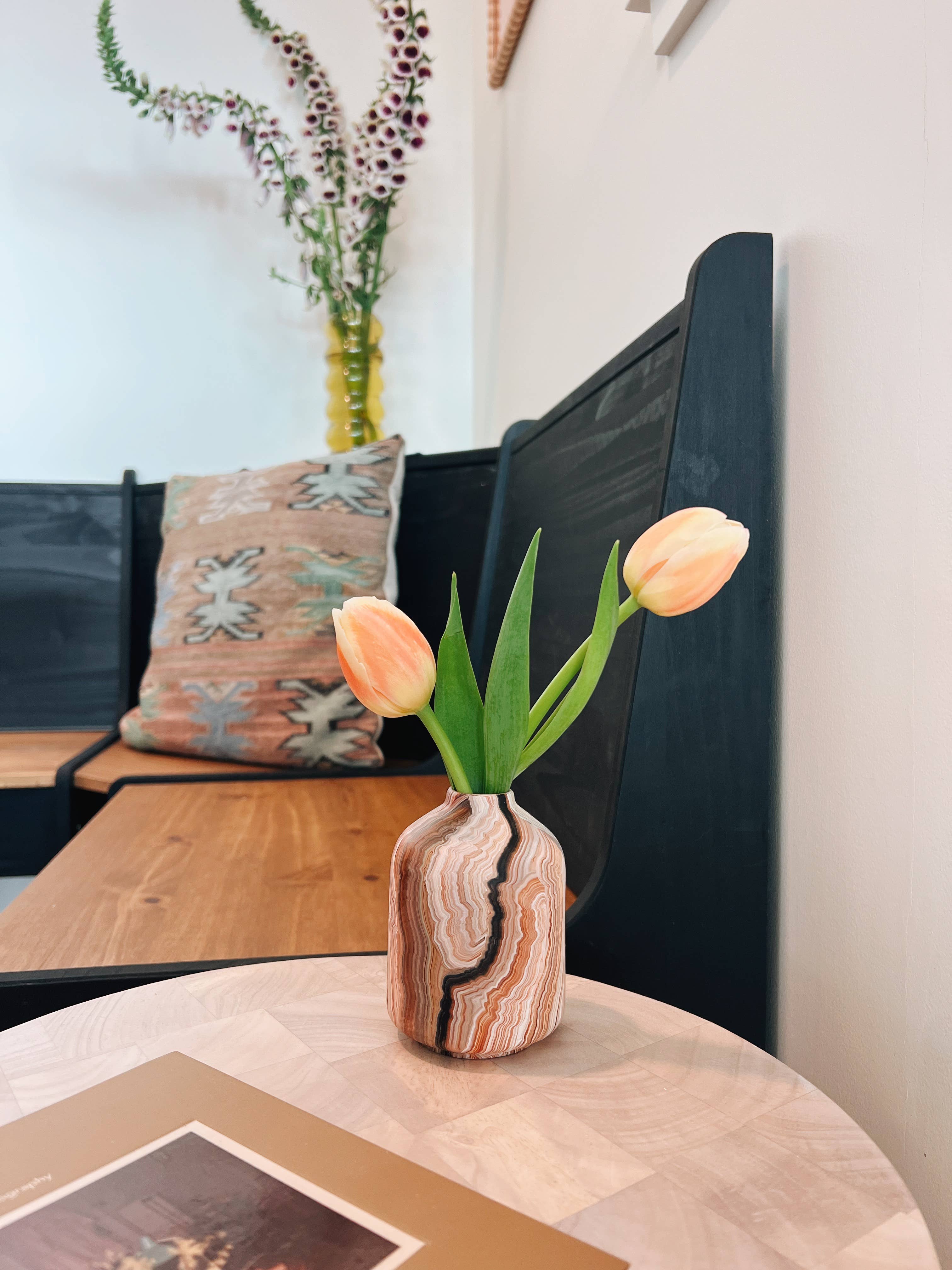 Just like the rock formations these are inspired by, each vase has its own unique pattern created by loading between 6-14 colors on each brush stroke.