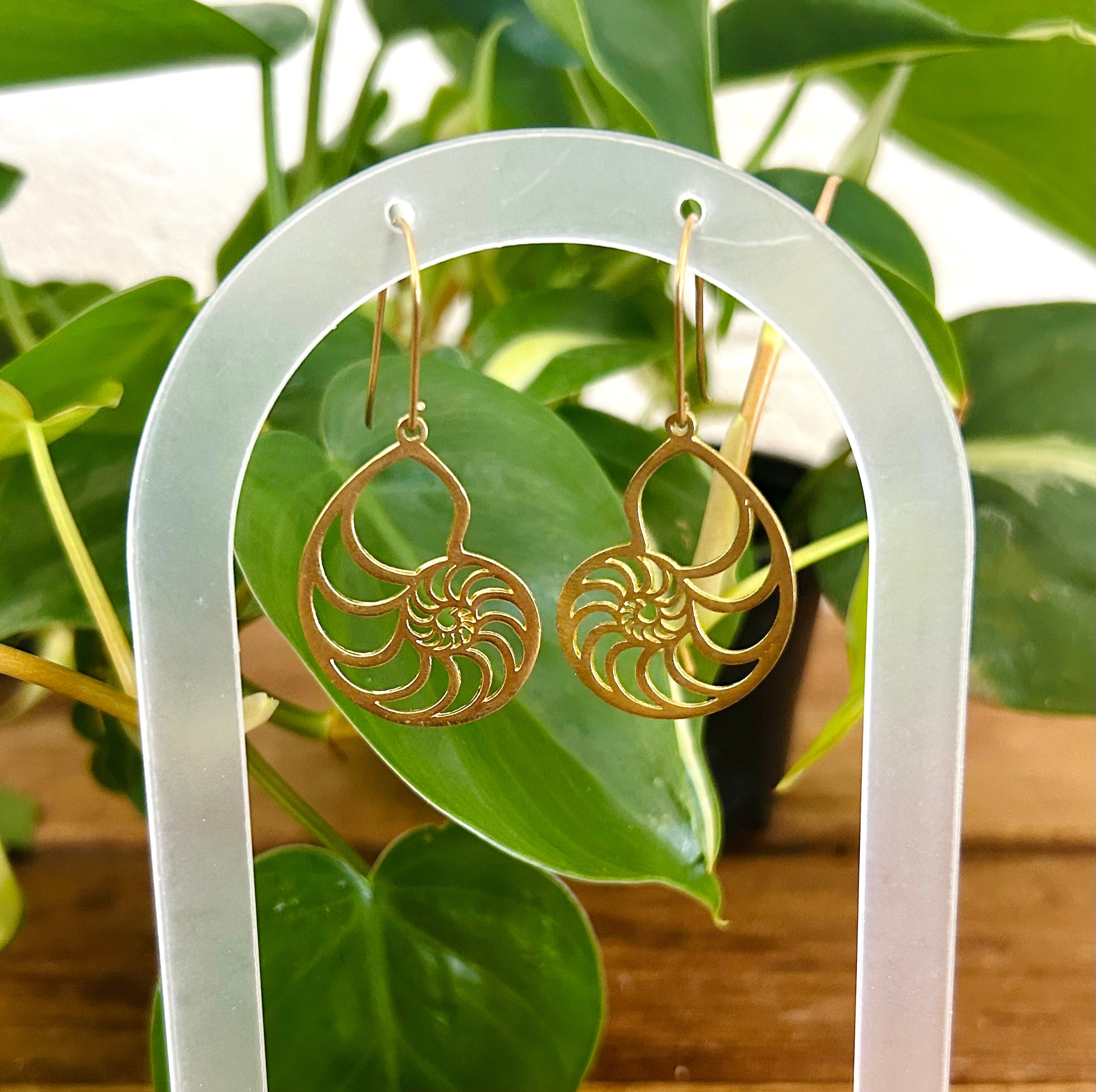 Brass ammonite charm earrings.
